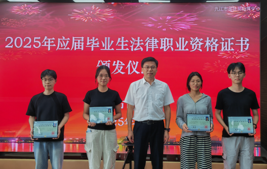 近日,九江市司法局在市民服务中心举行仪式,为通过2024年国家统一法律职业资格考试的2025届应届毕业生集中颁发法律职业资格证书。同期,市司法局联合市律师协会举办了法律职业推介会,搭建法治人才供需对接平台,助力新获证人员规划职业发展。