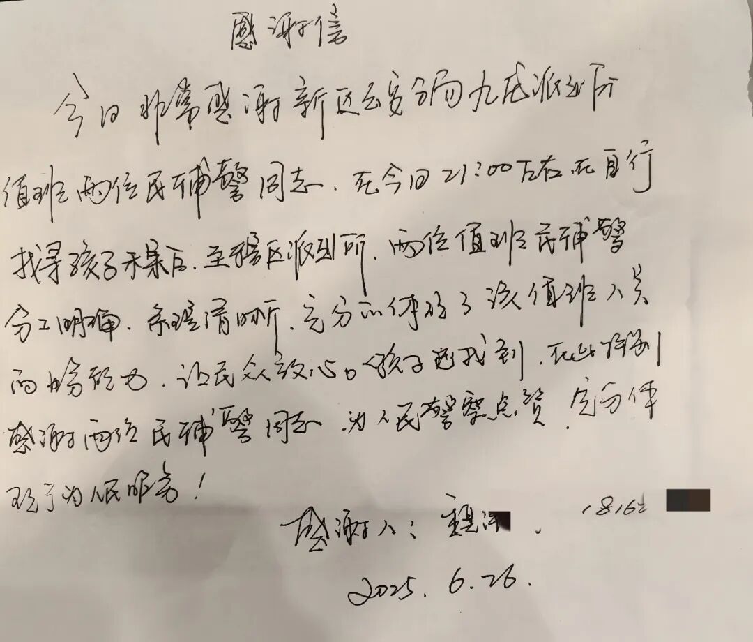 今日非常感谢 新区公安分局九龙派出所 值班民辅警同志 为人民警察点赞! ![]() 6月26日晚,星光点缀的夜色中却弥漫着一对父母的焦灼。晚上21时许,九龙派出所的报警电话骤然响起——群众魏某7岁的女儿在小区附近走失,稚嫩的身影消失在茫茫夜色中。 接警后,民警蔡贤峰、辅警江骏辉、李庐成迅速投入搜寻。监控室里,蔡贤峰紧盯屏幕,指尖飞速切换画面,额角渗出的细汗在冷光下格外清晰;街头巷尾,江骏辉与李庐成驾车穿梭,警灯的红蓝光芒撕开黑暗,一声声呼唤随着夜风飘远:“小朋友,你在哪儿?”居民楼的灯光渐次熄灭,他们的脚步却愈发急促。 晚上11时10分,李庐成的手电筒光扫过一处绿化带——一个小小的身影正蜷缩在灌木丛旁,抽泣声微弱却揪心。“找到了!”他一个箭步冲上前,脱下警服外套裹住孩子发冷的肩膀。路灯下,民警蹲下身,轻轻擦去女孩脸上的泪痕:“不怕,警察叔叔带你回家。” ![]() 当警车驶回派出所,魏先生夫妇踉跄着扑向孩子,三人相拥而泣。魏先生还当场写下一封感谢信郑重递到民警手中,信纸上的字迹因激动而微微颤抖:“为人民警察点赞,让民众放心!”这薄薄的纸张,承载的是一家人满溢于心的深深感激。 那晚的九龙派出所,警徽的光芒与星辰交相辉映。从监控屏前的凝眸到街头巷尾的奔走,从父母崩溃的边缘到孩子重绽的笑颜——人民警察用坚实的臂膀托举起希望的重量。正如值班日志上那行朴素的记录:“孩子平安,一切值得。” (来源:八里湖新区公安) |
