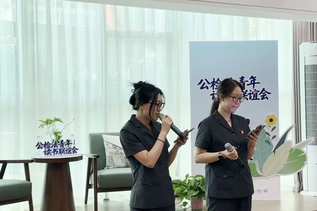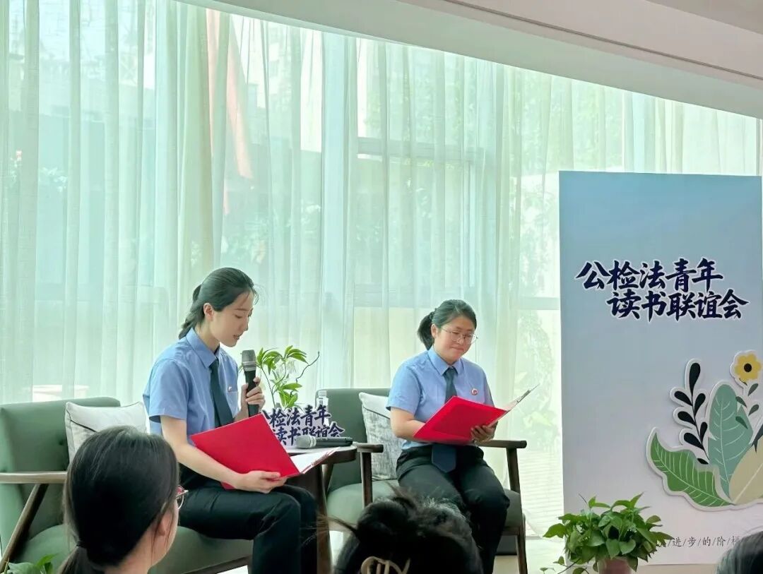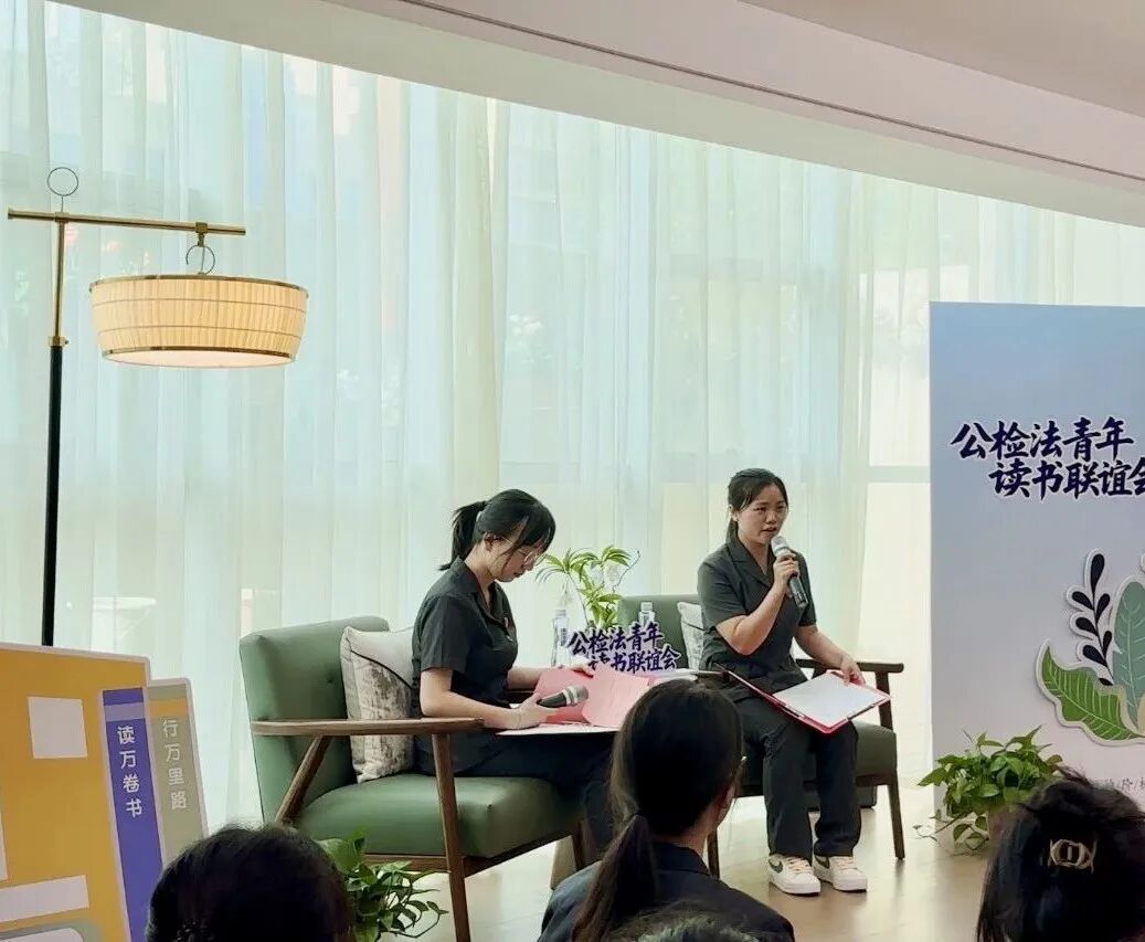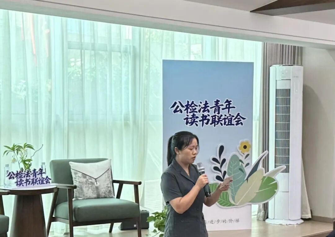 为进一步丰富青年干警精神文化生活,营造“爱读书、读好书、善读书”的浓厚氛围,5月7日,濂溪区人民检察院特邀区公安分局、区法院的青年干警代表携手开展“书香润初心 建功新时代”公检法青年读书联谊会,以书会友、以艺抒怀。三家单位的领导们共赴这场思想与活力的盛宴。活动伊始,院党组成员、副检察长涂弘莹为本次活动致辞,鼓励大家在思维碰撞中激发灵感,在互学互鉴中共同成长,在协同合作中深化共识,做互学共进的奋斗者、法治理想的同行者、阳光生活的践行者。 ![]() ![]() 【初识破冰】 ![]() 在自我介绍环节,青年干警们或以真诚鲜活的方式展现自我,或以介绍爱好,或以读书感悟分享的方式开场。“我的爱好是爬山、打羽毛球,很高兴能参加这次读书会!”“很高兴能够在这里遇见一群热爱阅读的小伙伴。”“希望在未来的时间里,我们能够互相学习、互帮互助、共同进步。”共同的职业理想、相似的兴趣爱好,像无形的纽带,瞬间拉近了青年伙伴们的距离。 ![]()