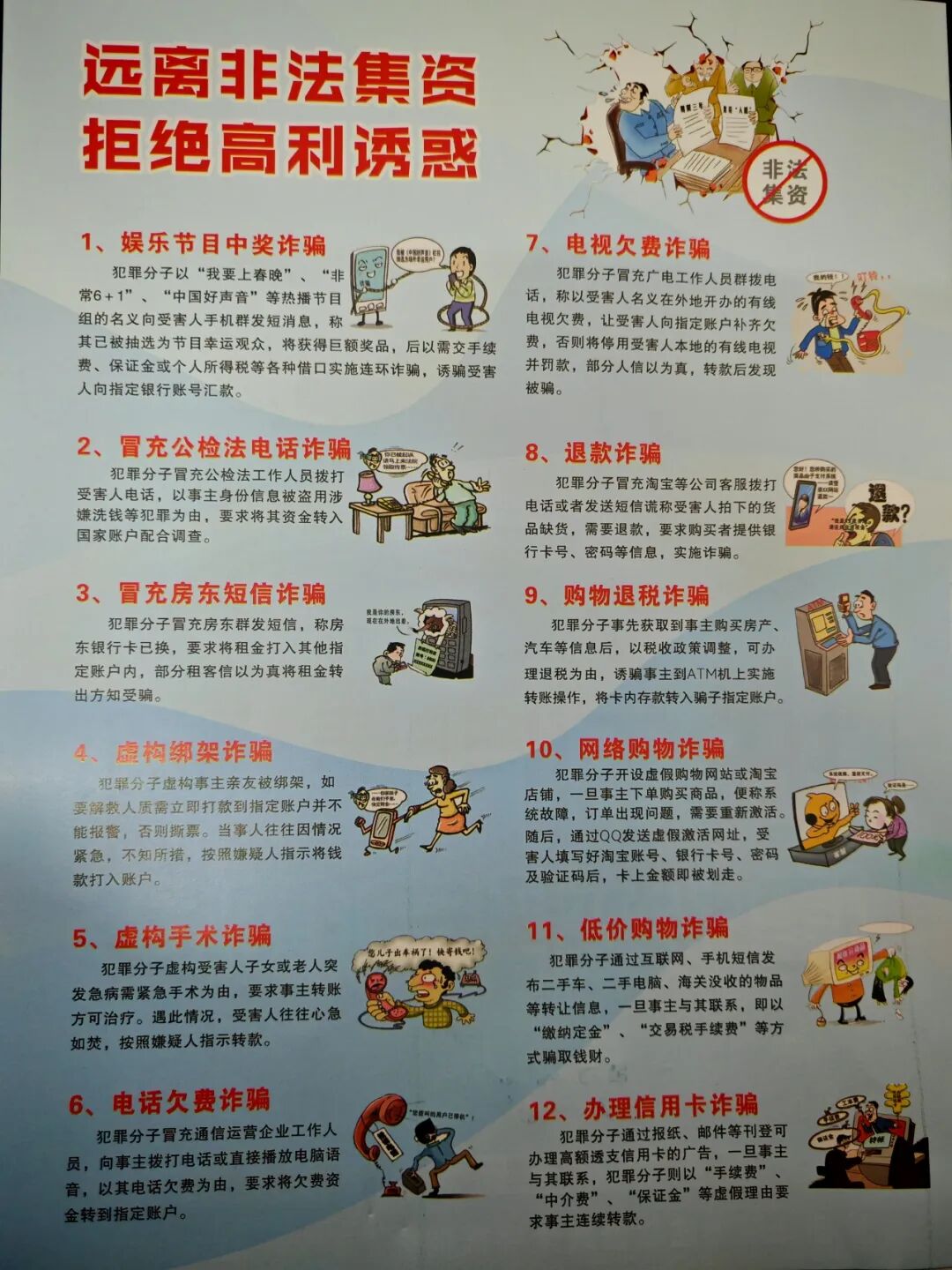腊梅吐蕊添年味,法治宣传暖人心。节日期间是非法集资活动的高发期,一些不法分子借“新春福利”“年终返利”等名义设下圈套,侵害群众财产安全。为守护好群众的“钱袋子”,让大家度过一个平安祥和的春节,近日,德安法院组织干警走进公园,开展“金融安全共守护 全民防非迎新春”普法宣传活动,将实用的法律知识和技巧送到群众身边。 ![]() “阿姨,你看这份宣传册,这些冒充公检法要求转钱的,说亲友被绑架要打款的都是诈骗!要注意别被骗啊!”“大爷,春节期间遇到陌生人推荐‘养老投资’的,可千万别轻易转账,一定要多核实!”活动现场,干警们向过往群众发放宣传手册、抽纸等普法物资。宣传资料以图文的形式介绍了十二种诈骗手段,针对老年群体防范意识较弱、易被高收益诱惑的特点,干警们详细讲解了非法集资的法律定义,表现形式和危害后果,叮嘱大家“不轻信、不透露、不转账”,遇到疑似非法集资行为及时举报,让群众认识到非法集资“竹篮打水一场空”的本质。 ![]() ![]() 春节是万家团圆的美好时刻,守护群众财产安全是法院义不容辞的责任。此次“送法进公园”活动,是德安法院践行司法为民宗旨、深化普法宣传工作的具体举措,通过将普法宣传与节日氛围深度融合,精准对接群众春节期间的防骗需求,用接地气的宣传方式让防范非法集资知识入脑入心,有效提升了群众的风险识别能力和自我保护意识。 ![]() ![]() 下一步,德安法院将继续立足审判职能,聚焦非法集资等涉众型经济犯罪的新形势、新特点,创新普法宣传形式,拓展宣传渠道,持续开展多维度普法活动,常态化发布典型案例和防骗提示,以司法力量打击非法集资犯罪,守护群众合法权益,为辖区群众度过一个平安、祥和、富足的新春佳节筑牢法治屏障。 |