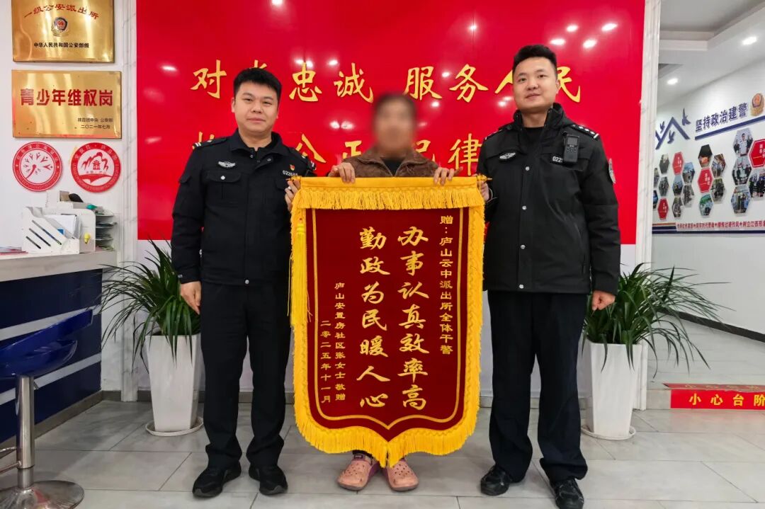 “勤政为民暖人心,办事认真效率高” 12月2日上午 庐山市公安局云中派出所 大厅内暖意融融 居民张大姐带着家人专程赶来 将一面印着鎏金大字的锦旗 郑重送到民警手中 她紧紧握住民警的手 眼眶泛红 “多亏了你们 我的血汗钱才没打水漂 真不知道该怎么感谢” 这温情一幕的背后 是一场与诈骗分子赛跑的紧急止付行动 ![]() 时间回溯到11月8日上午 云中派出所外 一阵急促的脚步声骤然响起 大门被匆匆推开 面色惨白的张大姐攥着手机 声音带着哭腔冲进值班室 浑浊的眼眶里满是慌乱与无助 “警察同志,我的血汗钱都没了 你们快帮帮我” 值班民警见状立即上前搀扶其坐下 递上热水耐心安抚 待张大姐情绪稍缓 一段揪心的遭遇缓缓道来 ![]() 张大姐在庐山景区从事环卫工作多年 起早贪黑攒下这些血汗钱 这笔钱是她未来生活的全部依靠 当天上午 一通陌生来电打破了平静 电话那头的“客服人员”语气热情 却带来一个让她揪心的消息 “您在我们平台开通的视频会员 即将自动续费,每月扣除50元 现在可以为您办理取消服务” 从未开通该会员的张大姐顿时慌了神 连忙询问取消流程 “客服”顺势引导 先是要求张大姐提供银行卡号 随后又以“验证身份”“解除绑定”为由 让她进行人脸验证等操作 一心只想保住血汗钱的张大姐 并未察觉异常 直到手机屏幕弹出银行卡转账提示 她才猛然惊醒 ![]() “情况紧急,赶紧止付” 听完张大姐的哭诉 民警第一时间联动相关部门 开展冻结操作 经过半小时的紧张奋战 在资金即将被转移的关键时刻 民警成功冻结涉案银行卡 精准截获被骗资金9.2万元