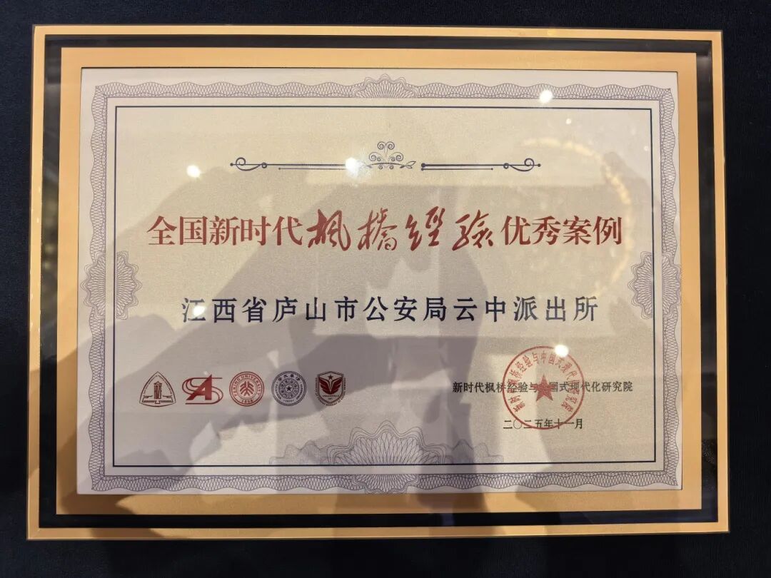 喜报!江西省庐山市公安局云中派出所《“云闪调”工作法助力涉旅矛盾纠纷快调快处》案例成功入选2025年全国新时代“枫桥经验”优秀案例。