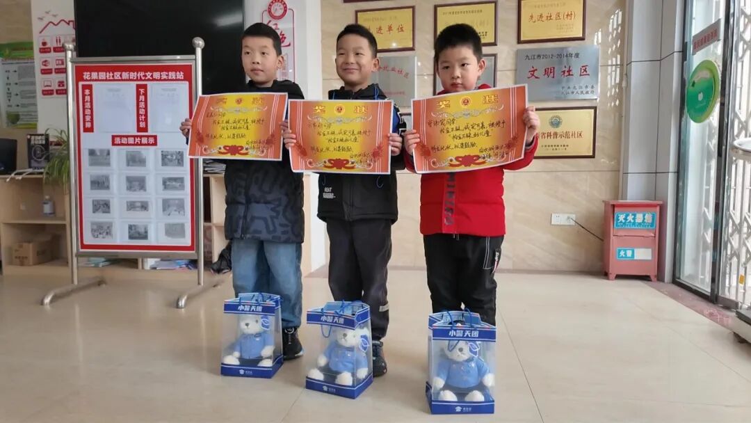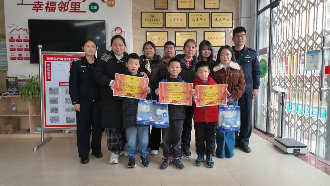 “孩子们,这是给你们的奖状 你们都是好样的!” 1月28日上午 浔阳公安白水湖派出所的民警 带着精心准备的奖状和礼物 来到浔阳区花果园党群服务中心 为三名小朋友举办了一场 温馨的表彰仪式 ![]() 在家长、老师以及 社区工作人员的见证下 民警将印有“拾金不昧好儿童”的奖状 郑重地递到三名小同学手中 接过奖状的那一刻 孩子们脸上绽放出开心的笑容 眼神里写满了自豪与喜悦 这场特别的表彰会 不仅是对孩子们拾金不昧 这种优秀品质的肯定 更是将正能量的种子 播撒在孩子们心间