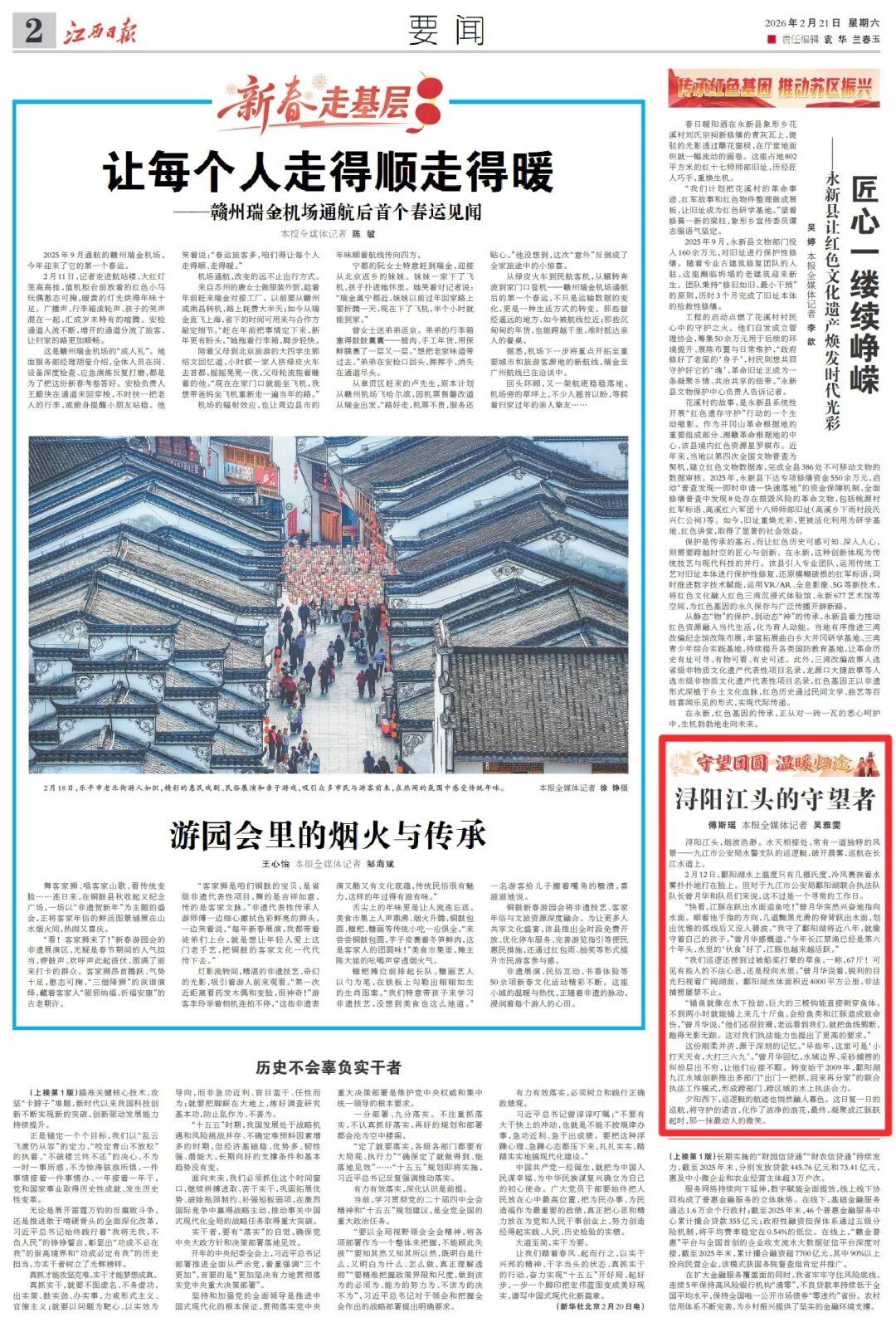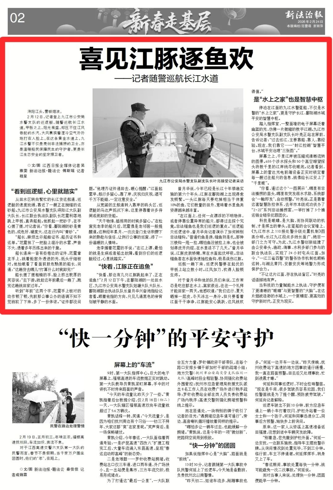 浔阳江头,雾锁烟波。 ![]() ▲开船巡逻 2月12日,记者登上九江市公安局水警支队的巡逻艇,随警巡航长江水道。甲板之上,阳光虽盛,却压不住江风卷起的水汽,大风裹挟着湿冷空气扑扑地打在人脸上。在这条黄金水道上,九江水警不仅是亮剑非法捕捞的卫士,亦是温暖船民保障民生的守护者,更是长江生态安全的最后一道防线。 ![]() ▲ 巡逻船只 “只要看到巡逻艇,心里就踏实” 从回水区转向繁忙的长江货运航道,巡逻艇的速度放缓,靠近了一艘正在抛锚的运砂船。 九江市公安局水警支队浔阳江大队副大队长(长江联合执法队副队长)范震利落地跳上甲板,直奔船舱。他抓起一把砂子,在手心搓了搓,对记者说:“你看,鄱阳湖的砂是青色的,成色好、硬度大,这在行内叫‘青砂’。” ![]() ▲上船检查 “船长,麻烦出示船舶证书、船员证书和运单。”范震抹了一把脸上湿冷的水雾,声音不大,却透着多年历练出来的干脆。 船长递来一沓有些卷边的证件,范震拿在手上,就着舱窗外透进的光,低头仔细核对。他抬眼看了看面前肤色黝黑的船长,问道:“这趟货去哪儿?打算什么时候卸完?” 船长搓了搓粗糙的手,脸上挤出敦厚的笑容说:“去下游。就赶这年前最后一趟了,跑完这趟就回家过年。” 听到“年前”这两个字,范震手上核对的动作顿了顿,先前那公事公办的语调不知不觉就软了下来,多了一份体谅。“证件都没问题。”他把理齐的证件递回去,暖心提醒道,“江面起雾早,航行多留心。靠了岸,庆祝归庆祝,酒可千万不能碰,一定注意安全。” 从宽阔的主航道转入靠岸的码头区,巡逻艇的马达声低沉下来,这里停靠着许多待闸或装卸的货船。 记者跟随长江联合执法队队员一起,拿着法律宣传册和春节慰问品。队员们看准节奏,一脚便踏上了甲板,动作娴熟得像回自己家。 船主老李握着范震的手,感慨万千:“在江上漂,最怕的就是生病或者船出故障。只要看到你们的巡逻艇经过,心里就踏实,跟吃了‘定心丸’似的。” “天干物燥,电线和插排用的时候多留心。”范震的语气就像是邻里间的提醒。这种经年累月、一次次登门走访积攒下来的熟稔与信任,让例行公事的巡查,化为了一份独特而坚实的人情味。 ![]() ▲江面巡逻 “快看,几只江豚正在追鱼” “快看,那边有几只江豚跳起来了,正在追鱼!”2月12日下午,在鄱阳湖的一处回水区,九江市公安局水警支队姑塘大队大队长(鄱阳湖联合执法队队长)曾月华兴奋地指给记者看。顺着他指的方向,只见几道黑色的脊背划破平静的水面。 曾月华说,今年已经是长江十年禁渔的第六个年头,江豚在鄱阳湖上出现得愈发频繁。一头江豚每天要吃掉相当于体重10%的鱼,它们数量的回升,意味着水里鱼类资源越来越丰富了。 ![]() ▲检查江边是否有非法锚鱼情况 “这江面上,任何一点漂浮的不明物体,或者停靠位置异常的船只,都得过去探个究竟。”曾月华介绍,水上技防往往受制于水域广阔和天气影响,在极端天气下,民警的双眼就是最管用的“显微镜”。非法锚鱼也是他们巡逻的重点。 巡逻船只巡逻途中,曾月华向记者演示了如何辨别非法锚钩。“普通钓鱼是‘诱’,锚鱼则是‘扎’。那种三棱钩一甩一拉,哪怕鱼没被拉上来,也会被划得皮开肉绽,在水里活不了几天。”曾月华面色严峻地说,江豚皮肤娇嫩,常在水面起伏呼吸。非法锚鱼者在水面快速抽拉鱼钩,极易误伤江豚。 巡航一趟下来,巡逻民警要在起伏的甲板上站立数小时。江风如刀,吹得人脸颊生疼。 对于曾月华和他的队员们来说,工作常态是吃住都在水上,离家很远,往往一个礼拜才能回家一两天。他感叹道:“我们这行,夏天晒掉一层皮,冬天冻出一身冷。但只要看着江面干干净净,江豚能安心跳跃,这风吹得也值。” “水上之家”也是“智慧中枢” 停泊在江面的九江水警趸船,不仅是水警的“水上之家”,更是守护长江、鄱阳湖水域平安的“智慧中枢”。 ![]() ▲九江水警趸船 踏入指挥室,一整面墙的电子屏幕泛着幽蓝的光,仿佛一片微缩的数字江湖。九江市公安局水警支队副支队长叶亮正站在屏前,告诉记者:“过去巡江,主要靠船、靠人、靠经验。现在,我们靠它——‘封江控湖’智慧平台,水域平安治理‘三张图’。” 屏幕之上,千里江岸被压缩成清晰流转的图景。655个涉水探头和50个高空瞭望探头将数千里的江岸线尽收眼底。记者看到,屏幕上的雷达光电前端设备正实时锁定着每一艘过往船只的信息,就像给长江安上了“千里眼”。 “你看,通过这个‘一图展示’,哪里有非法捕捞的苗头,哪里有突发溺水求助,系统都会‘一触即发’,自动预警。”叶亮说。正是靠着这套智慧防控体系,去年市本级成功侦办了“2·22”系列非法捕捞案,一举打掉了3个“捕、运、销”全链条犯罪团伙。 ![]() ▲讲解水域平安治理“三张图” 科技是眼睛,是大脑,而协同联动的机制,才是挥出的拳头。在趸船的会议室的墙上,《九江市水上110接处警分级处置机制》图表分明。长江九江段点多线长面广,绝非一部门之力可守。为此,九江水警创新组建了由公安牵头,渔政、海事、水利多部门参与的联合执法队,实现了“24小时屯兵江面”。如今,“一江三省四警”的警务协作机制也顺畅运转,与湖北黄冈、安徽安庆等地警力形成保护合力。 “在这片江面上,没有执法盲区。”叶亮的话语掷地有声。 当科技的力