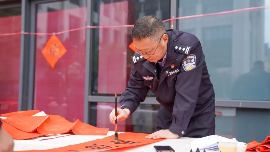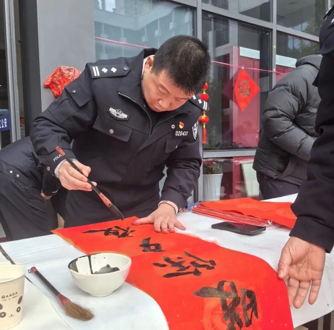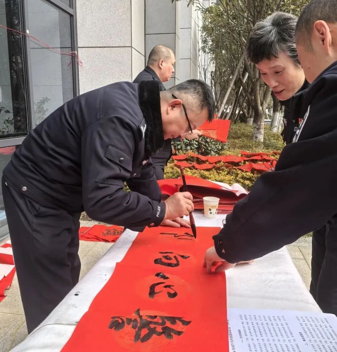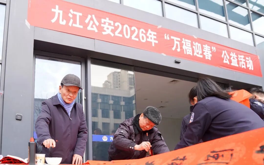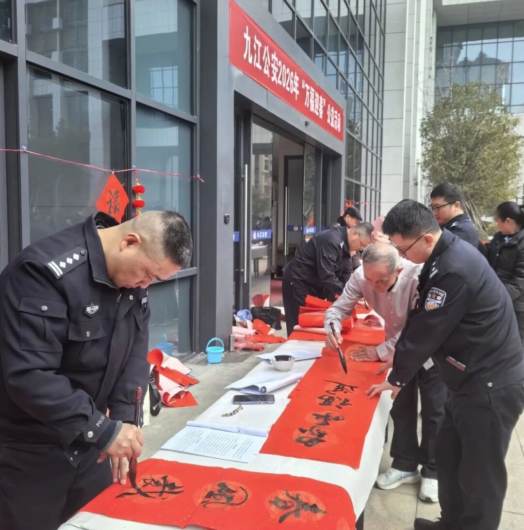 骏马蹄轻携福入,梅梢香暖引春归。2月4日,九江公安警营开展了一场热闹非凡的2026年“万福迎春”公益活动。市局党委委员、政治部主任程俊出席活动。 ![]() 活动现场暖意融融、丹墨飘香,九江公安文联书法协会的13位书法家以笔墨传递温情,为九江公安民辅警及家属送上了浓浓的新春祝福和文化滋养。大红宣纸在案台上铺展如霞,墨香与节日的喜庆气息交织弥漫。 ![]() ![]() ![]() ![]() ![]() 九江公安文联书法协会的书法家们凝神聚力、挥毫泼墨,隶书的古朴厚重、楷书的端庄工整、行书的飘逸洒脱在笔尖流转。他们围绕马年吉祥、平安守护、警民同心等主题创作的一副副寓意深远的春联跃然纸上,一个个圆润饱满、笔法灵动的“福”字倾注深情,每一笔都彰显着警魂底色,每一字都承载着美好祝愿。 ![]() ![]() ![]() ![]() 写完春联,警营的书法家们又马不停蹄地赶往基层所队,八里湖新区九龙派出所、濂溪分局十里派出所、经开区分局西二路派出所、浔阳分局庐山南路派出所等地把市公安局党委的关怀送到基层民警辅警和群众手中,让大家近距离感受红红火火的新春美好祝福。