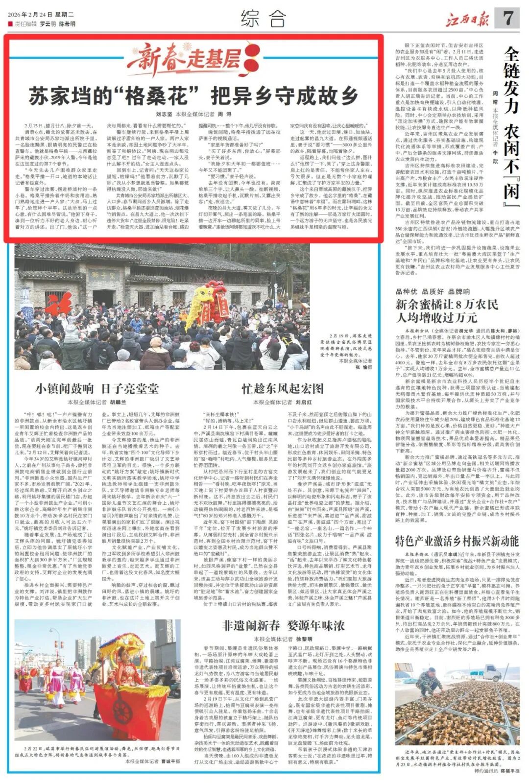 “家里年货都准备好了吗?” “买了好多东西,你放心。”屏幕那头,妻子笑着说。 “我除夕和大年初一都要值班……今年又不能团聚了。” “要习惯。”妻子轻声说。 去年没有团聚,今年也没有。简简单单三个字,让人鼻头一酸。挂断视频,格桑平措收起手机,沉默片刻,又露出笑容:“走,夜巡去。” 夜晚的昌九大道,雾又浓了几分。车灯切开雾气,照出一条笔直的路。格桑平措一边开车一边聊起所里的同事,脸上带着暖意:“连做饭阿姨都知道我不吃什么,大家总问我有没有困难,让我心里暖暖的。” 这一天,他走过田埂、巷口、加油站,走过起雾的昌九大道。在那通视频通话里,妻子说“要习惯”——3000多公里外的故乡,隔着屏幕,也隔着除夕。