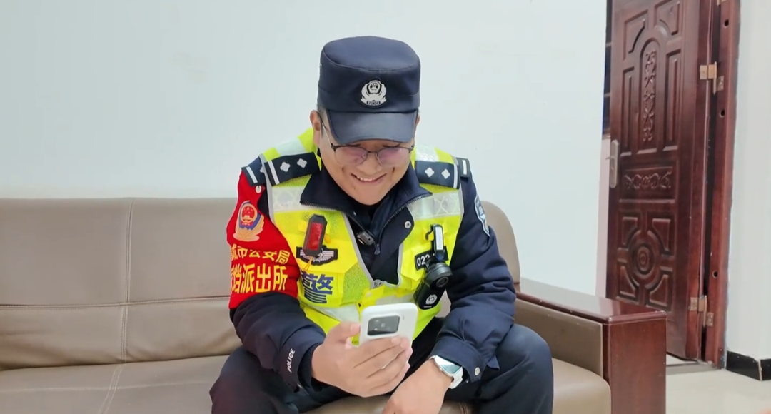 共青城市公安局苏家垱派出所辖区大、人口多,春节期间返乡人员激增。除了走访群众,格桑平措还要巡查加油站、烟花爆竹销售点。在昌九大道上,他一次次拦下违停大货车:“这里全段禁停,很危险!赶紧开走。”检查灭火器、进加油站看台账、路边提醒司机……整个下午,他几乎没有停歇。 晚饭间隙,格桑平措拨通了远在拉萨妻子的视频通话。