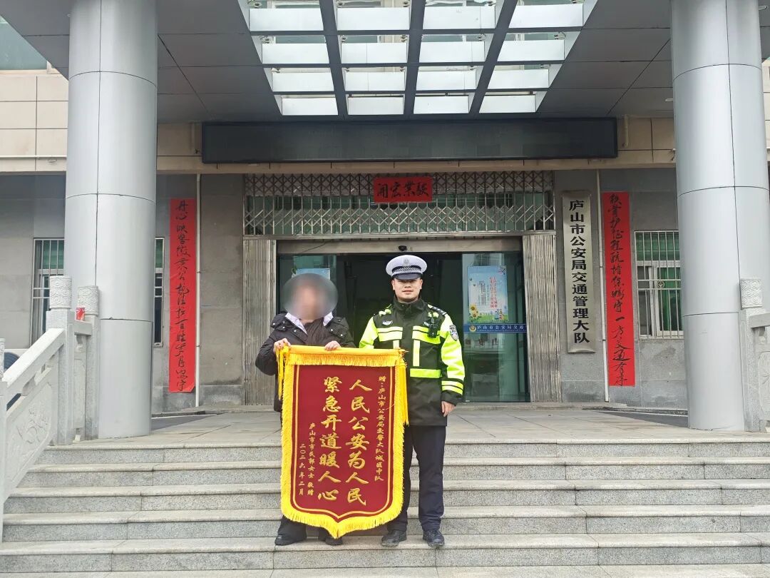 ▲上图为2月27日,幼儿家属郭女士赠送锦旗给民警黄文韬 (来源:庐山市公安) |